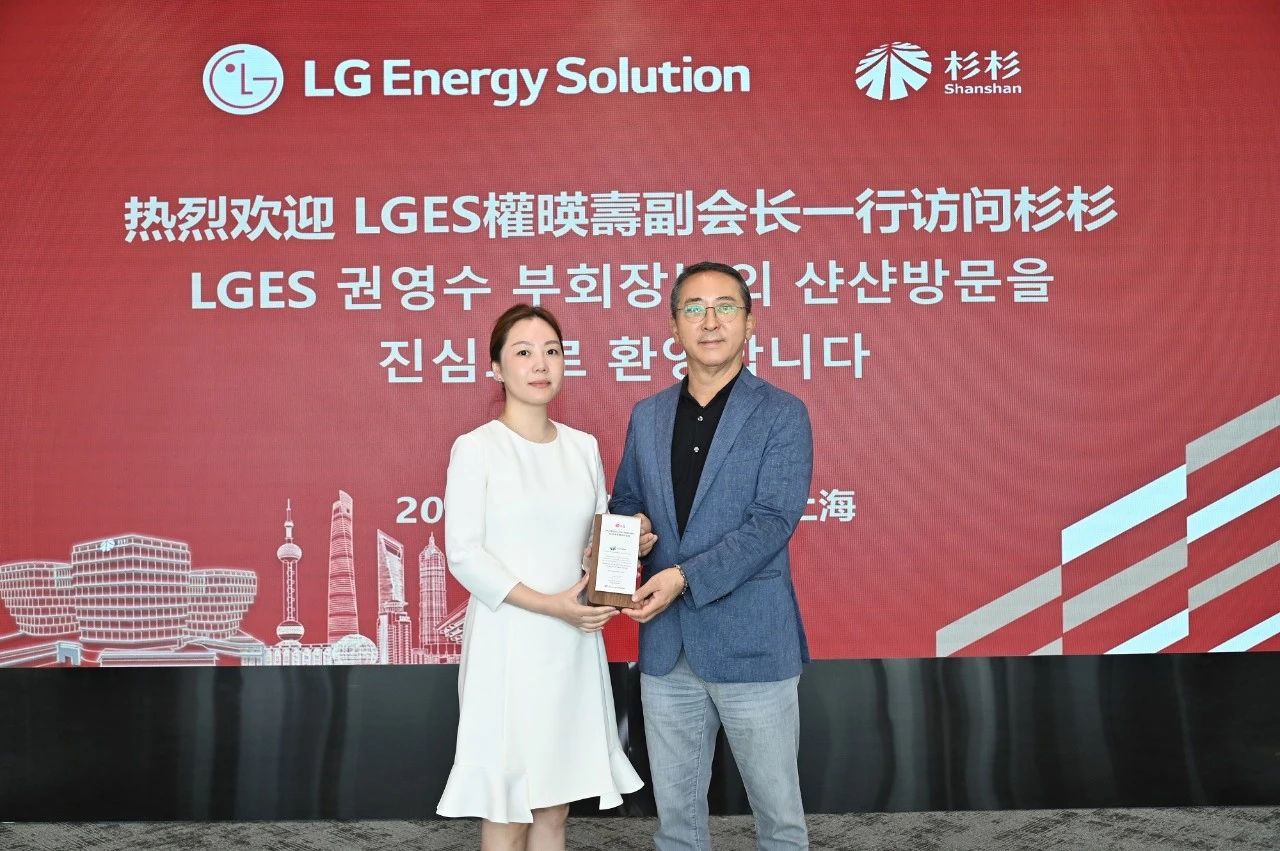 會后,權暎壽為杉杉科技頒發LG2023年優秀合作伙伴獎,以感謝杉杉科技及團隊對LGES發展作出的貢獻。