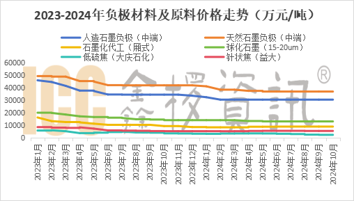 價格方面,人造石墨負極材料價格在年初低位小幅反彈后保持相對穩定態勢。